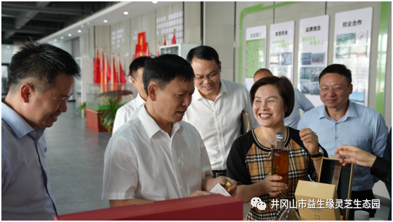 江西日報社社長,江西報業(yè)傳媒集團黨委書記、董事長黃萬林一行蒞臨井岡山益生緣靈芝生態(tài)園調(diào)研